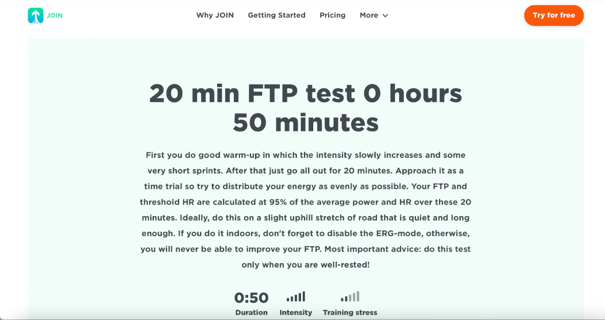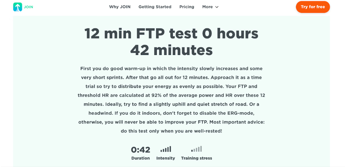 For the most reliable results using the JOIN FTP calculator, choose a straight, gradual uphill route with minimal turns. It’s best to aim for calm weather, avoiding windy conditions, especially crosswinds, to ensure accuracy.